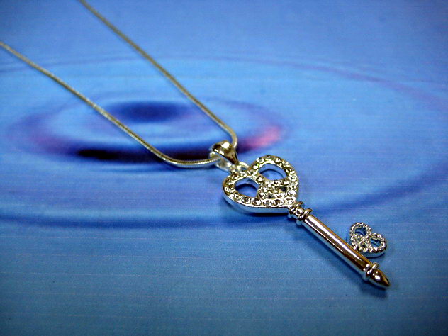 16" necklace in silver plating with Key pendant and clear crystal stone