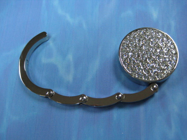 Round handbag hanger in rhodium plated - size : (45mm/35mm) with Clear crystal stones