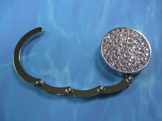 Round handbag hanger in rhodium plated - size : (45mm/35mm) with light rose stones