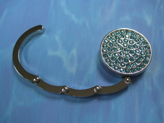 Round handbag hanger in rhodium plated - size : (45mm/35mm) with Aquamarine stones